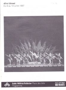 Basée sur le roman de Bradford Ropes et le film du même nom (1933), 42nd Street fût un succès instantané lors de sa présentation sur Broadway, elle était à l’époque, dirigée par Gower Champion et orchestrée par Philip J. Lang. Elle a remporté le Tony Award pour la meilleure comédie musicale et, est devenue un des spectacles le plus longtemps présenté sur les planches de Broadway, rien de moins ! elle fût jouée plus de 3,486 fois aux Winter Garden, Majestic et St. James Theatres de New-York et mettait en vedette, Tammy Grimes et Jerry Orbach. Elle fût, aussi, produite à Londres et a remporté le prix Olivier pour la meilleure comédie musicale. Une reprise fût présentée en 2001, de nouveau sur Broadway, et obtint le Tony pour la meilleure « reprise ».